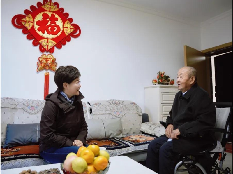 黄雅丽关切看望97岁的红军遗孀武秀莲,详细询问了老人的健康状况和生活情况。