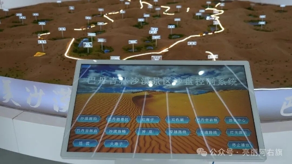 在巴丹吉林沙漠游客服务中心,明亮的灯光、宽敞的大厅、数字化的智能系统,为旅游景区高质量发展提供坚强保障。正中央的大型巴丹吉林沙漠沙盘,将巴丹吉林沙漠的各风景以最直观的方式呈现在游客眼前。此外游客服务中心还设立了文化长廊,文创产品展示区进一步宣传巴丹吉林沙漠文化。游客服务中心的数字化系统不仅是景区运营管理的重要保障,也是提升游客游玩体验、提高景区服务质量的坚实基础。