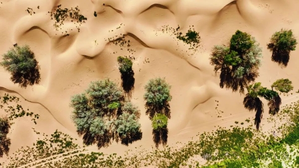 沿着规划好的生态旅游线路进入巴丹吉林沙漠,越野车驶过沙脊,两侧金色沙丘上的波纹清晰可见,那是风沙雕琢出的细密纹路,在阳光下明暗交错。沙生植物的根系深扎在地下,起到了固定流沙的作用。监测显示,过去一年巴丹吉林沙漠核心区的湖泊水位整体保持稳定。