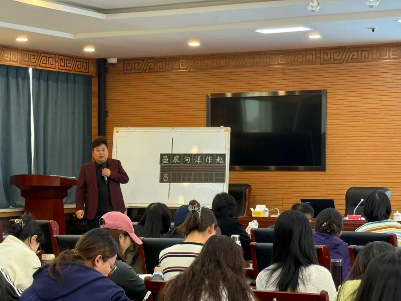 培训由书法家协会主席李鹏飞等专家领衔,以“问题导向、案例赋能”为核心思路,通过专题讲座、现场示范、互动答疑、实践展示形式,实现理论知识与教学实操的深度融合。其中,李鹏飞结合硬笔书写规范、软笔笔法技巧及课堂板书设计要点开展针对性指导,既帮助教师夯实书法技能根基,又引导其更新书法教学理念与方法。活动中更明确“实”“勤”两大实践方向,以“实”筑基,强调规范汉字书写是教师履职、学生核心素养培育及长远发展的必备基本功,需落到教学细节之中。