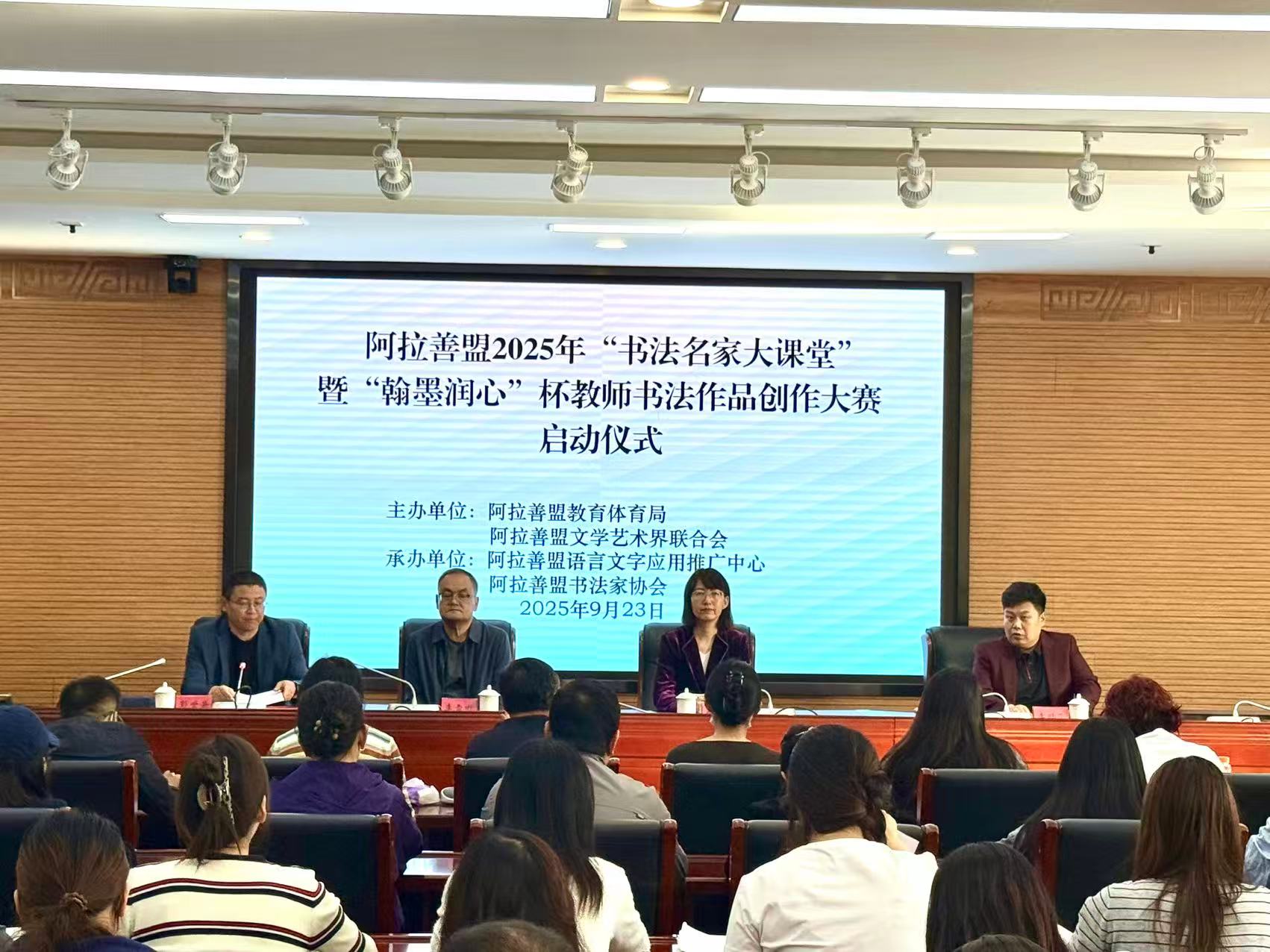 为深入推进学校美育浸润行动,传承弘扬中华优秀传统文化,全面提升全盟中小学教师书法艺术素养与书写教学能力,9月23日,阿拉善盟教育体育局(以下简称“盟教体局”)主办的2025年“书法名家大课堂”培训活动圆满完成,全盟300余名中小学书法、语文学科教师参训。