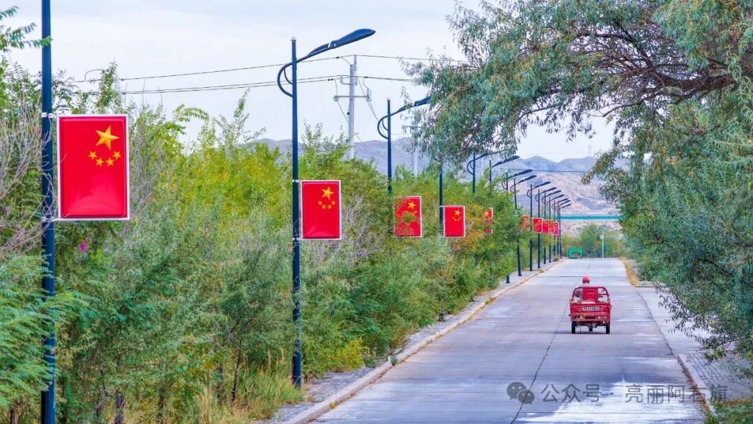 金秋时节,阿拉善右旗大街小巷处处洋溢着喜庆氛围。为迎接中华人民共和国成立76周年,阿拉善右旗积极行动,通过插红旗、拉彩带、摆花束的方式,为节日增添一抹亮丽的“中国红”。
